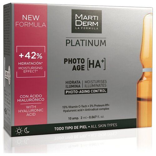 НАЙТИ ВЫГОДНЕЕ - Martiderm Platinum Photo Age HA+ Ampules Коррекция фотостарения для лица 2 мл 10 шт. с дозатором