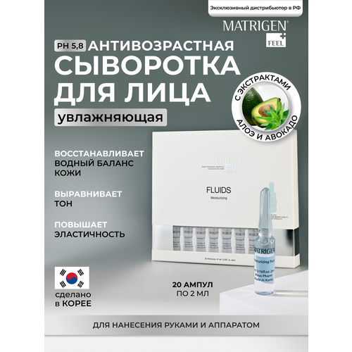 НАЙТИ ВЫГОДНЕЕ - Matrigen Moisturizing Fluids Увлажняющая омолаживающая сыворотка - флюид для лица , шеи, декольте / под / для мезороллера и дермапен / 20 ампул х 2 мл
