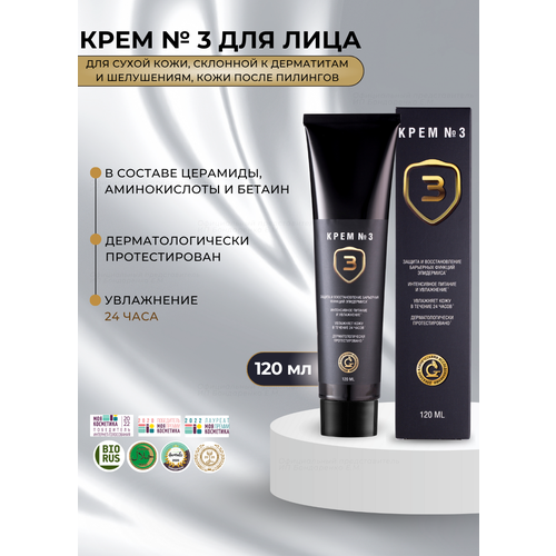 Назначение: подходит для любого типа кожи с нарушенным гидро-липидным балансом, в том числе для детской кожи. Крем способствует восстановлению защитного барьера кожи, сокращению потери влаги, длительному увлажнению, повышает упругость и эластичность кожи1. Содержащиеся в креме фосфолипиды, сфинголипиды в ламеллярной форме и витамин F2, являются незаменимыми для эффективного ухода за кожей с пониженным содержанием влаги, поврежденной и шелушащейся, также после косметических процедур. 1 на основании результатов клинических исследований крема. 2 на основании данных тестов in vivo, ex vivo для компонента. Клинически доказано крем №3*: - прошел дерматологический контроль, - дерматологически протестировано, - восстанавливает защитно-барьерную функцию кожи, - увлажняет кожу в течении 24-х часов, - повышает упругость и эластичность кожи, - интенсивно увлажняет и питает. Не является лекарственным средством. * По результатам клинических исследований на основании "Заключения по оценке потребительских свойств парфюмерно-косметической продукции".