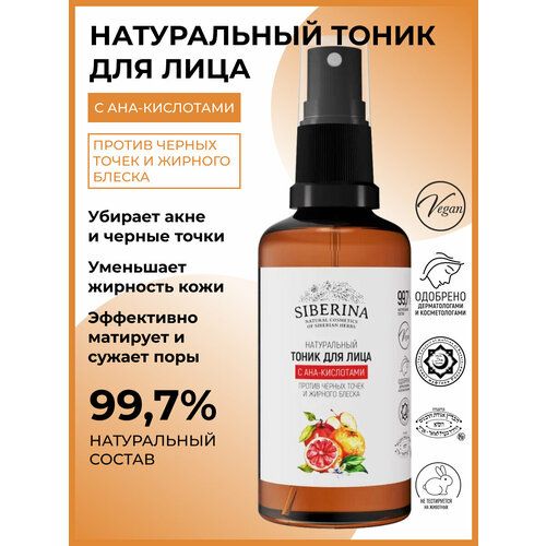 НАЙТИ ВЫГОДНЕЕ - SIBERINA Тоник для лица с АНА-кислотами 50 мл 115 г 1 шт. 1 шт. флакон