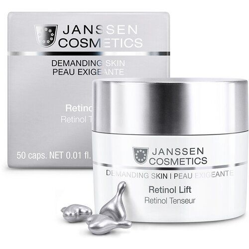 НАЙТИ ВЫГОДНЕЕ - Janssen Cosmetics Demanding Skin Retinol Lift Капсулы для лица с ретинолом для разглаживания морщин 150 мл 75 г 50 шт. 1 шт. пластиковая банка