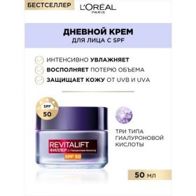НАЙТИ ВЫГОДНЕЕ - L'Oreal Paris, Дневной антивозрастной крем Ревиталифт Филлер против морщин c SPF 50