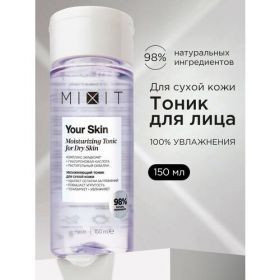 Миксит Увлажняющий тоник для комплексного ухода за кожей лица Your Skin Moisturizing Tonic for Dry Skin. Уходовое средство оказывает интенсивное очищающее и тонизирующее действие. Способствует отшелушиванию ороговевших клеток. Оказывает крутой антивозрастной эффект. Ухаживающий тоник идеально подходит сухой и чувствительной коже: избавляет от сухости, стянутости и шелушений, не вызывает воспаления, покраснения и раздражение. Некомедогенно.