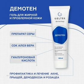 НАЙТИ ВЫГОДНЕЕ - Гельтек Очищающий гель для лица Демотен от прыщей, угревой сыпи, против воспалений и акне, 100 мл