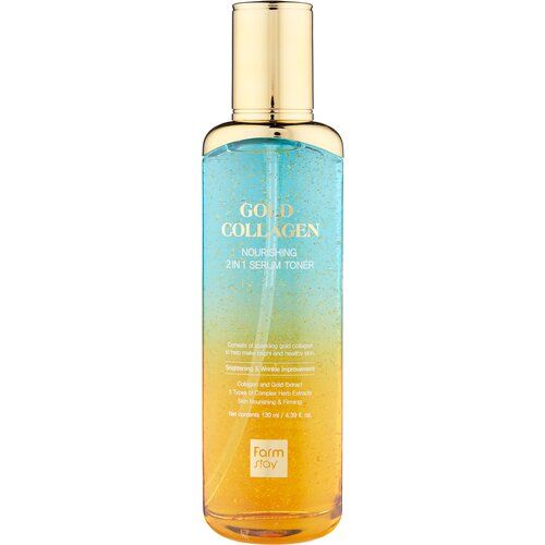 НАЙТИ ВЫГОДНЕЕ - Farmstay Gold Collagen Nourishing 2 In 1 Serum Toner Тонер-сыворотка для лица с золотом и коллагеном 130 мл 130 г 1 шт. 1 шт. флакон с дозатором