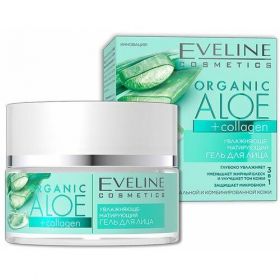 НАЙТИ ВЫГОДНЕЕ - Увлажняюще-матирующий гель для лица, Eveline Cosmetics, Organic Aloe Collagen, 50 мл