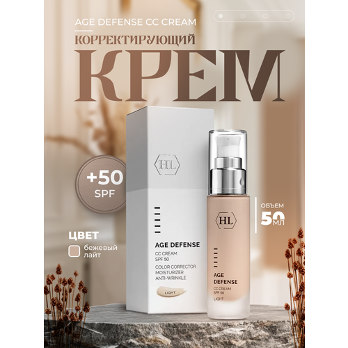 НАЙТИ ВЫГОДНЕЕ - Holy Land Age Defense: Корректирующий крем для лица, светлый оттенок (CC Cream Light SPF50), 50 мл