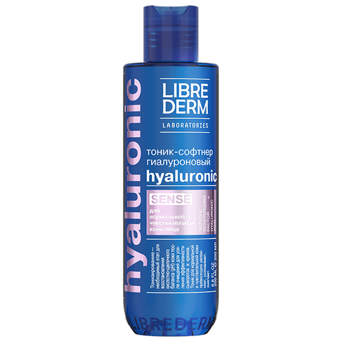 LIBREDERM Гиалуроновый тоник-софтнер SENSE для нормальной и чувствительной кожи 200 мл. Гиалуроновый тоник-софтнер предназначен для ухода за нормальной и чувствительной кожей. Эффективно увлажняет кожу, мягко удаляет с ее поверхности остатки очищающего средства, восстанавливает и нормализует липидный баланс, нарушенный после умывания, придает ощущение свежести, чистоты и комфорта, тонизирует, обладает превосходной увлажняющей и влагоудерживающей способностью и подготавливает к дальнейшему нанесению средств основного ухода, которые после применения тоника лучше впитываются и эффективнее действуют. Низкомолекулярная гиалуроновая кислота обеспечивает глубокое увлажнение кожи, предотвращает трансэпидермальную потерю влаги и поддерживает ее необходимый уровень в течение дня. Способ применения: нанесите небольшое количество тоника на ватный диск и протрите кожу лица, избегая области вокруг глаз утром и вечером после процедуры очищения. Далее используйте средство основного ухода, подходящее вашему типу кожи. Не требует смывания. Подходит в качестве ежедневного ухода.
