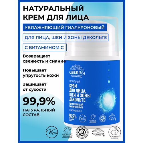НАЙТИ ВЫГОДНЕЕ - Siberina Натуральный увлажняющий гиалуроновый крем для лица, шеи и зоны декольте с витамином С