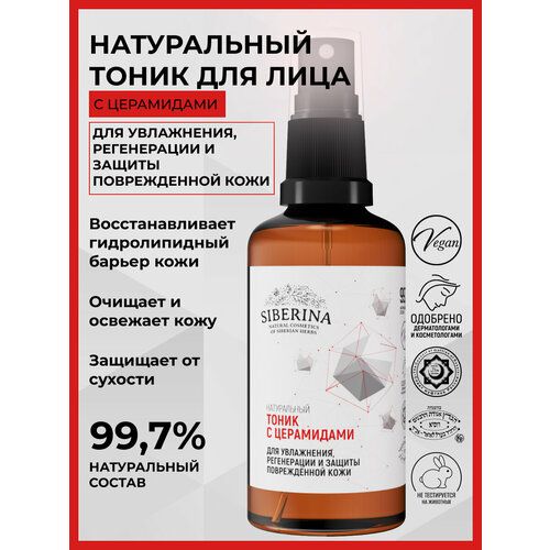 НАЙТИ ВЫГОДНЕЕ - Siberina Натуральный тоник для лица с церамидами для увлажнения, регенерации и защиты повреждённой кожи, 50 мл