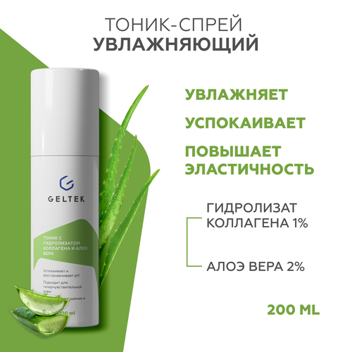 НАЙТИ ВЫГОДНЕЕ - Гельтек Тоник для лица увлажняющий с гидролизатом коллагена и алоэ вера, успокаивающий лосьон 200 мл