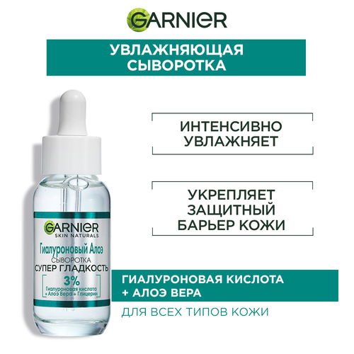 НАЙТИ ВЫГОДНЕЕ - GARNIER Супер Гладкость Гиалуроновая Алоэ-сыворотка для лица 30 мл 25 г 1 шт. 1 шт. флакон