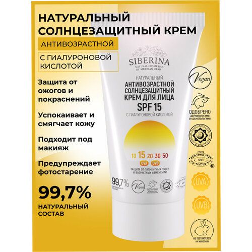 НАЙТИ ВЫГОДНЕЕ - Siberina Натуральный антивозрастной солнцезащитный крем для лица SPF 15 с гиалуроновой кислотой, 50 мл