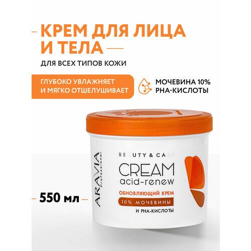 НАЙТИ ВЫГОДНЕЕ - ARAVIA Обновляющий крем с PHA-кислотами и мочевиной (10%) Acid-renew Cream, 550 мл