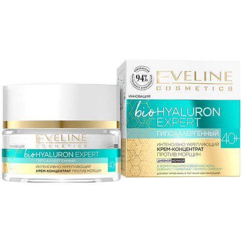 НАЙТИ ВЫГОДНЕЕ - Eveline Cosmetics bioHYALURON EXPERT Крем-концентрат Гипоаллергенный интенсивно укрепляющий против морщин 40+, 50 мл