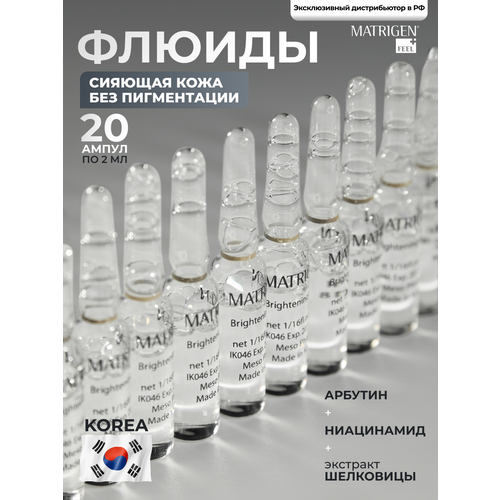 Matrigen Brightening Fluids Отбеливающая против пигментации сыворотка - флюид для лица , декольте для мезороллера дермапен / 20 ампул х 2 мл