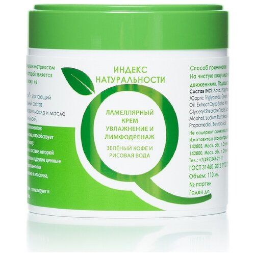 Зелёный кофе и рисовая вода. Уникальность продукта: созданный по технологии ламеллярной эмульсии крем обладает нежной тающей текстурой, легко распределяется и действует более эффективно. Насыщает кожу необходимой влагой, активизирует обменные процессы, улучшает цвет лица. Результат: на коже ощущается неповторимая бархатистость, постепенно уходит отёчность, разглаживаются мелкие неровности, кожа приобретает благородный оттенок и свежий вид. DubBaseExpert - 100% растительный эмульгатор из оливкового масла и масла абрикосовых косточек - основа для создания ламеллярных эмульсий. Зелёный кофе - природный источник полезных для кожи компонентов: Кофеин -стимулирует лимфодренаж и кровообращение в коже, способствует устранению отёков, укрепляет стенки сосудов, подтягивает кожу. Масло зелёного кофе - липидная фракция кофейных зерен, в составе которой помимо обычных жирных кислот (олеиновой, стеариновой, пальмитиновой) содержатся редкие жирные кислоты (арахиновая, бегеновая), а также кофеин, фитостеролы, токоферолы и другие ценные вещества. Масло хорошо совместимо с кожей, обладает не только выраженными увлажняющими свойствами, но и хорошо питает и смягчает кожу, стимулирует выработку коллагена и эластина, помогает защитить кожу от солнечного света. Рисовая вода - старинный секрет косметики азиатских стран - источник аминокислот, полисахаридов, витаминов группы В и микроэлементов. Благодаря такому богатому составу рисовая вода тонизирует и увлажняет, улучшает цвет лица, восстанавливает защитный слой, усиливает микроциркуляцию и в целом продлевает молодость кожи. Состав: Aqua (Вода), Propylheptyl Caprylate (Пропилгептил каприлат / эмолент), Coco-Caprylate (Коко каприлат / эмолент), Caprylic/Capric Triglyceride (Каприлик/каприк триглицериды / эмолент), Glycerin (Глицерин), Sorbitol (Сорбитол), Niacinamide (Витамин В3), Caffeine (Кофеин), Green Coffee Oil (Масло зелёного кофе), Extract Oryza Sativa Water (Рисовая вода), Tocopherol, Beta-Sitosterol, Squalene (Токоферол, Бета-ситостерол, Сквален / природный антиоксидант), Glyceryl Stearate Citrate, Sucrose Stearate, Polyglyceryl-4 Cocoate, Cetyl Alcohol, Sodium Ricinoleate (Глицерил стеарат цитрат, Стеарат сахарозы, Полиглицерил-4 кокоат, Цетиловый спирт, Рицинолеат натрия / натуральный эмульгатор Dub Base Expert), Xanthan Gum (Ксантановая камедь), Parfum (Отдушка), Sorbitan Caprylate, Propanediol, Benzoic Acid (Сорбитан каприлат, Пропандиол, Бензойная кислота / консервант, разрешенный по стандарту COSMOS для производства органической косметики).