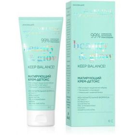 Уже после первого применения матирующий крем детокс дневной/ночной KEEP BALANCE • Технология Actimatt обеспечивает мгновенный и длительный матирующий эффект, выравнивает микрорельеф кожи; • bio чай матча регулирует выработку себума и уменьшает видимость пор; • каолин помогает коже бороться с несовершенствами, успокаивает раздражения; • bio Kombuchka разглаживает, увлажняет, оказывает антиоксидантное действие; • AHA -, PHA кислоты нежно отшелушивают и регенерируют эпидермис, не вызывая раздражений; • Комплекс пре и пробиотиков укрепляет уникальный микробиом кожи, улучшает цвет лица. Формулы продуктов BEAUTY&GLOW разработаны для комплексного решения проблем молодой кожи и гарантируют мгновенные эффекты. Продукты созданы в тренде Fun&Care (массы кремов отличаются цветом и наличием неповторимого запаха) и тренде Glow эффект (благодаря наличию в составе пробиотического комплекса кожа приобретает здоровый сияющий вид). Vegan & cruelty free.