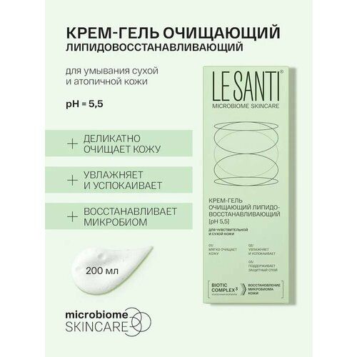 LE SANTI крем-гель очищающий липидовосстанавливающий для лица И тела - для чувствительной, сухой и очень сухой кожи лица и тела, в том числе склонной к атопии.