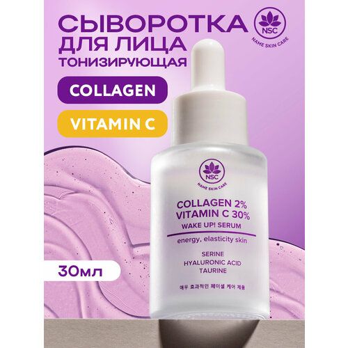 Тонизирующая сыворотка с Витамином С и коллагеном NSC (Name Skin Care). Содержит концентрированный морской Коллаген 2% и комплекс Витамина С 30%, которые оказывают глубокое и длительное увлажнение. Защищают от трансэпидермальной потери влаги, насыщают клетки и обеспечивают мощную профилактику старения кожи. Сыворотка осветляет пигментацию и выравнивает цвет лица. Протеины овса и аминокислоты стимулируют выработку собственных коллагеновых волокон. Гиалуроновая кислота и Витамин Е укрепляют сосудистую стенку, выравнивают микрорельеф, уменьшает количество мелких морщин и заломов. Сыворотка обладает антиоксидантными свойствами и защищает кожу от свободных радикалов, предотвращая увядание. Подходит для всех типов кожи.