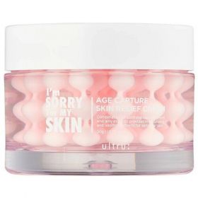Успокаивающий капсульный крем для сухой кожи I’m Sorry For My Skin Age Capture Skin Relief Cream содержит каламин, экстракт центеллы азиатской и глутатион. Компоненты эффективно успокаивают чувствительную кожу, снимают раздражения и устраняют покраснения, оказывают мощное противовоспалительное и ранозаживляющее действие. Эффективен в комплексном лечении акне и угревой сыпи. Обладает бактерицидным и заживляющим действием, ускоряет кровообращение и запускает регенеративные процессы внутри клеток. Крем нормализует водный баланс, препятствует потере влаги, интенсивно увлажняет и питает, предотвращает обезвоживание. Подходит для ухода за чувствительной кожей и помогает при куперозе: укрепляет капилляры и делает сосудистые звездочки менее выраженными. Выравнивает тон, заметно улучшает цвет лица и наполняет здоровым сиянием. Средство имеет основу геля с кремовыми капсулами внутри. При нанесении на кожу гель смешивается с тающей кремовой капсулой и приобретает однородную текстуру. Крем обеспечивает пролонгированное увлажнение на весь день. Основные ингредиенты: Экстракт центеллы азиатской обладает мощными целебными свойствами, благодаря своему уникальному составу. Обладает противовоспалительным и ранозаживляющим действием, способствует восстановлению барьерных свойств кожи и удержанию влаги, снижает чувствительность кожи, уменьшает отеки, оказывает сосудоукрепляющее действие и уменьшает купероз. Масло ши смягчает, способствует быстрому восстановлению кожного покрова, регенерирует и оказывает антивозрастной эффект, является хорошим эмолентом, оказывает противовоспалительное действие и ускоряет заживление. Важным свойством является способность доставлять активные компоненты в глубокие слои кожи. Не закупоривает поры. Гиалуронат натрия - низкомолекулярная форма гиалуроновой кислоты. Проникает в глубокие слои эпидермиса, активно увлажняет клетки, способствует удержанию влаги в коже. Образует защитный слой, который не дает влаге испариться. Пантенол (провитамин В5) регулирует важнейшие клеточные процессы в коже, способствует выработке энергии, оживляет и омолаживает кожу. Оказывает эффективное воздействие при лечении угревой сыпи и акне, помогает справиться с сухостью и шелушениями, усиливает способность кожи сопротивляться агрессивному воздействию окружающей среды. Каламин прекрасно подсушивает и обеззараживает, уменьшает отечность, снимает раздражение, воспаление эпидермиса, зуд. Стимулирует восстановление целостности кожных покровов, препятствует действию раздражающих факторов. Глутатион - один из сильнейших антиоксидантов для восстановления, отбеливания кожи и придания ей упругости. Кроме антиоксидантной защиты, он эффективно предупреждает появление пигментных пятен, отбеливая и осветляя кожу, делает ее здоровой и сияющей. Глутатион также участвует в формировании коллагена и эластина, что помогает восстановить упругость тканей. Помогает коже вырабатывать витамин Е и С, защищает клетки от повреждений. Улучшает цвет лица и борется с угревой сыпью.