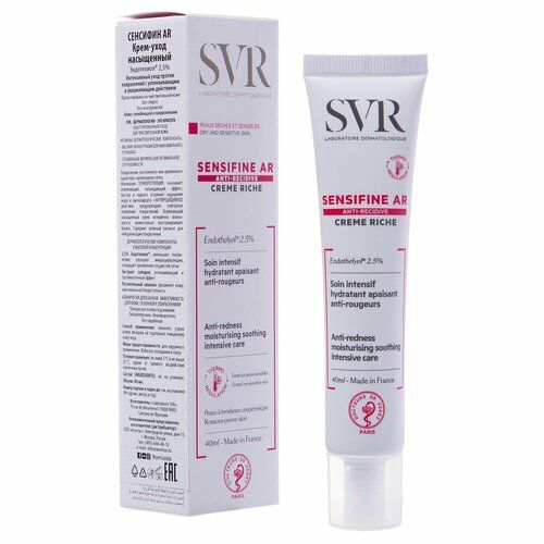 Насыщенный питательный крем для чувствительной кожи. Доказанная эффективность на чувствительной и проблемной; коже, а также; на коже, склонной к покраснениям и куперозу. Благодаря уникальной формуле Сенсифин AR крем мгновенно освежает и обеспечивает эффект прохлады, возвращая чувство комфорта.