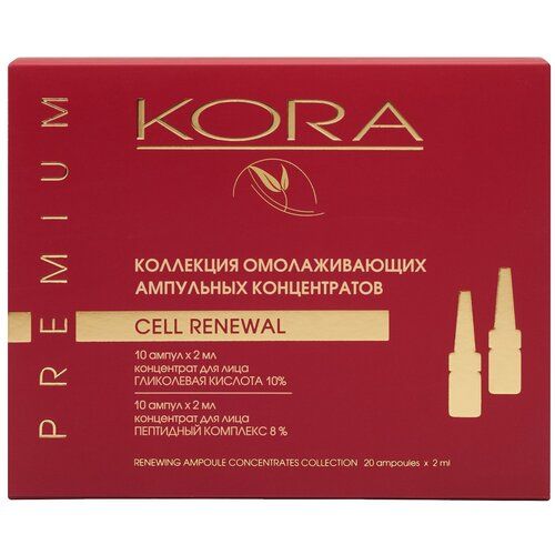 НАЙТИ ВЫГОДНЕЕ - Kora Коллекция омолаживающих ампульных концентратов, гликолевая кислота 10%, пептидный комплекс 8% 2 мл 20 шт.