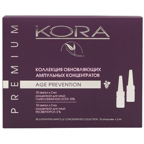 НАЙТИ ВЫГОДНЕЕ - Kora Коллекция обновляющих ампульных концентратов, гликолевая кислота 10%, ресвератрол 3% 2 мл 205 г 20 шт.
