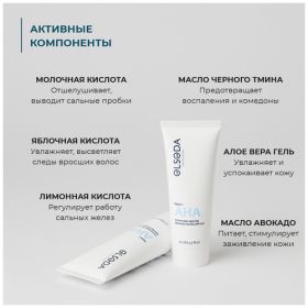 Состав: Aqua, Lactic Acid, Glycolic Acid, Citric Acid, Malic Acid, Emulsifying Wax, Persea Gratissima Oil, Glyceryl Stearate SE, Caprylic/Capric Triglycerides, Cetearyl Alcohol, Sodium Hydroxide, Nigella Sativa Seed Oil, Aloe Barbadensis (Aloe Vera) Leaf Gel, Tocopherol, Beta Sitosterol, Squalene, Salicylic Acid, Benzyl Alcohol, Sodium Benzoate, Potassium Sorbate, Aroma.