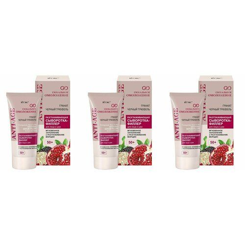 НАЙТИ ВЫГОДНЕЕ - Витэкс сыворотка-филлер для лица и шеи 50+ Разглаживающая гранат, черный трюфель глобальное омоложение, 30мл, 3 шт