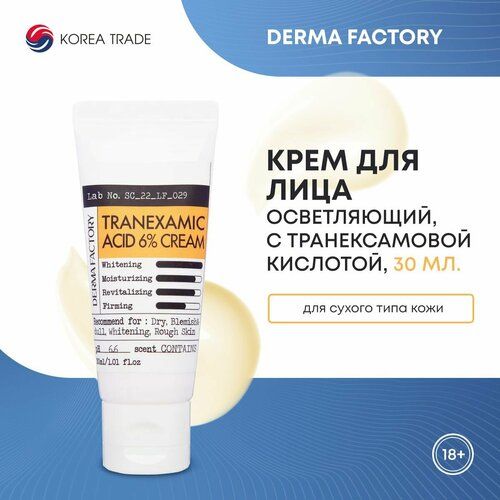 НАЙТИ ВЫГОДНЕЕ - Derma Factory Крем с 6% транексамовой кислотой - Tranexamic acid 6% cream, 30мл