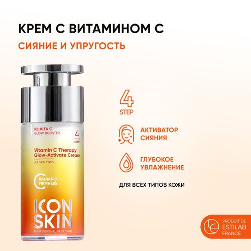 НАЙТИ ВЫГОДНЕЕ - Крем для лица увлажняющий с витамином С и морским коллагеном для всех типов кожи ICON SKIN RE: VITA C, 30 мл