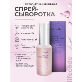 Гиалуроновая спрей сыворотка для лица с алоэ и коллагеном, 50 мл lifecode является must have в ежедневном уходе за кожей лица и шеи, зоной декольте. Сыворотка для лица увлажняющая подходит для всех типов кожи. Сыворотка представлена в удобном формате – спрее, что позволяет использовать ее без прямого контакта кожи с руками - что делает уход за кожей максимально комфортным. Она взбодрит, наполнит энергией и придаст естественное сияние, когда нет возможности просто умыться. К тому же, сыворотка представлена в компактном флаконе, его легко брать в дорогу. Мист для лица можно наносить поверх макияжа, когда почувствуется сухость/стянутость кожи.