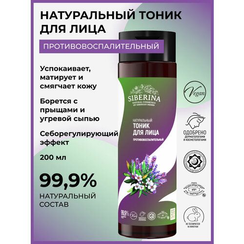 НАЙТИ ВЫГОДНЕЕ - Siberina Натуральный тоник для лица противовоспалительный 200 мл