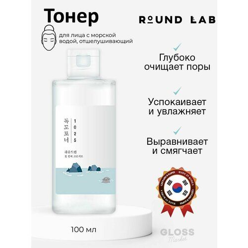 Отшелушивающий тоник с морской водой Round Lab 1025 Dokdo Toner восстанавливает кислотно-щелочной баланс кожи, поддерживает оптимальный уровень увлажнения в коже и регулирует работу сальных желёз. Тоник прекрасно удаляет омертвевшие клетки кожи, излишки кожного сала и способствует очищению пор.
