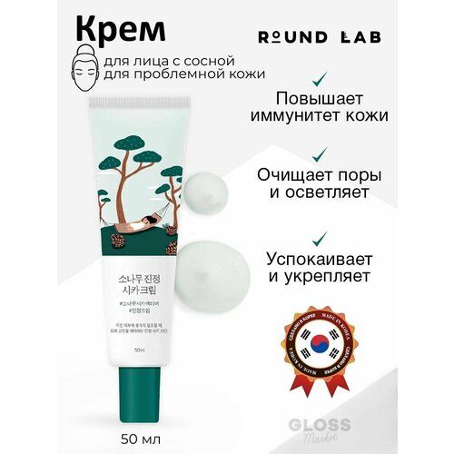 НАЙТИ ВЫГОДНЕЕ - ROUND LAB Крем успокаивающий с центеллой и экстрактом сосновых иголок Pine Calming Cica Cream 50 мл Корейская косметика