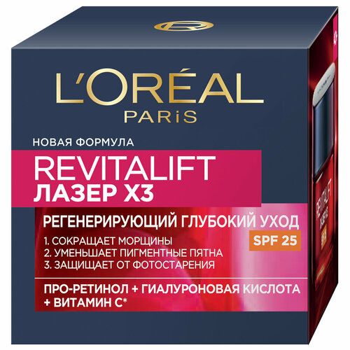 НАЙТИ ВЫГОДНЕЕ - Крем для лица L'Oreal Paris антивозрастной Revitalift Лазер Дневной против морщин SPF25 50мл