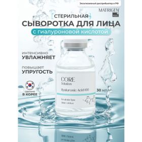 Matrigen Core Solution Hyaluronic Acid 100 Сыворотка мезококтейль Гиалуроновая кислота для мезотерапии лица руками аппаратом, 30 мл