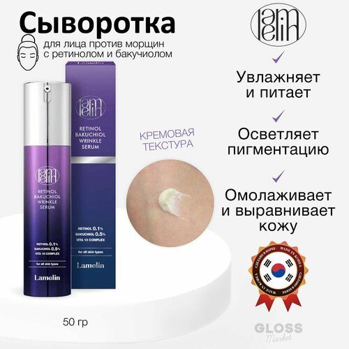 НАЙТИ ВЫГОДНЕЕ - Lamelin Омолаживающая сыворотка против морщин с ретинолом Retinol Bacuchiol Wrinkle Serum 50 мл