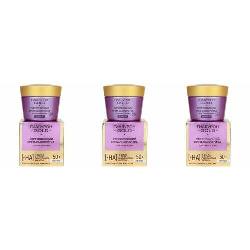 НАЙТИ ВЫГОДНЕЕ - Витэкс Укрепляющий крем-сыворотка, Гиалурон Gold 50+, для лица и шеи, SPF 15, ночной, 45 мл, 3 шт