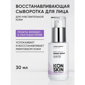 НАЙТИ ВЫГОДНЕЕ - Сыворотка для лица восстанавливающая с комплексом церамидов и пребиотиков для всех типов кожи, включая чувствительную ICON SKIN Hypoallergenic, 30 мл