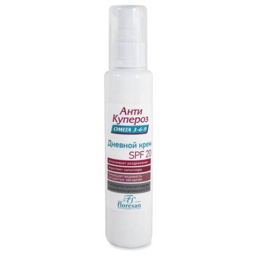 Дневной крем Floresan SPF 20 Анти Купероз является уникальным средством ухода за кожей лица. Это антикуперозный крем, который содержит много полезных для кожи женщин компонентов, которые помогут избавиться от таких неприятных проблем, как покраснения, краснота, раздражения, воспаления и шелушения.