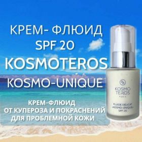 Крем-флюид KOSMO-UNIQUE SPF 20 от KOSMOTEROS является высокоэффективным средством в борьбе с расширенными сосудами, куперозом и покраснениями кожи.