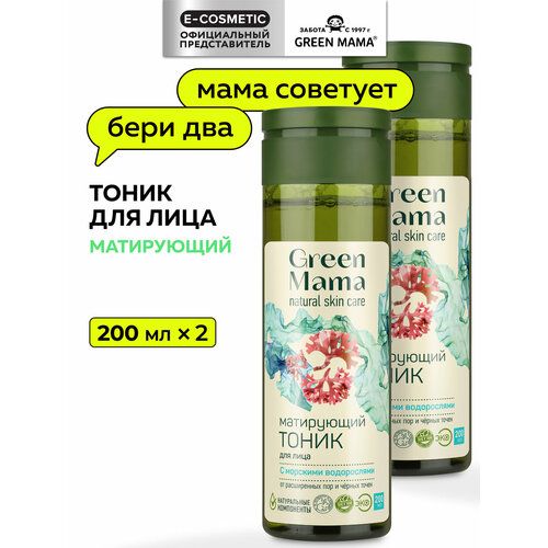 НАЙТИ ВЫГОДНЕЕ - Тоник матирующий от расширенных пор и черных точек GREEN MAMA Морской Сад с морскими водорослями 200 мл - 2 шт