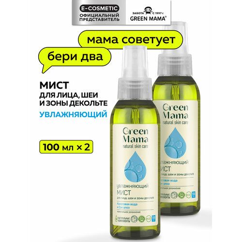 НАЙТИ ВЫГОДНЕЕ - Мист для лица и шеи GREEN MAMA увлажняющий с соком алоэ 100 мл - 2 шт