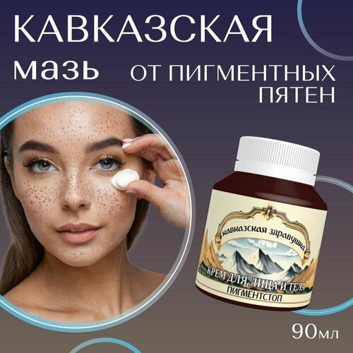 Мазь от пигментации, весушек, темных подмышек, отбеливание интимныхзон. Крем Пигментстоп изготовлен из экологически чистых кавказских трав и предназначен для отбеливания существующей пигментации и предупреждения ее появления на коже любого типа. Чудо мазь бережно отбеливает кожу на лице, теле, а также, в интимной зоне, в области подмышек и локтей. Уникальная формула крема от пигментации способствует уменьшению выраженности пигментных пятен, препятствует образованию новых, постепенно делает тон кожи более светлым и однородным. Крем выравнивает цвет кожи за счет полного осветления темных пятен, а также наполняет ее сиянием, тем самым делая состояние кожи более эстетичным и здоровым. Способ применения: небольшое количество крема наносить на проблемное место. 1-2 раза в день