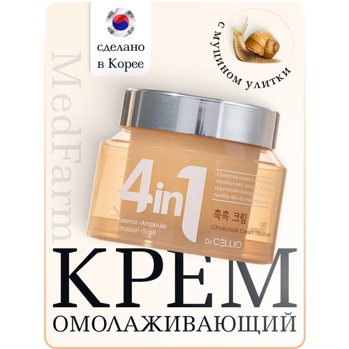 НАЙТИ ВЫГОДНЕЕ - Крем для лица увлажняющий с муцином улитки Dr. CELLIO G50 4 in 1 Chokchok Cream Moisture 70мл