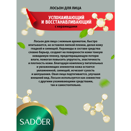 НАЙТИ ВЫГОДНЕЕ - Успокаивающий и восстанавливающий лосьон для лица Sadoer с керамидами 100 мл. х 2 шт.