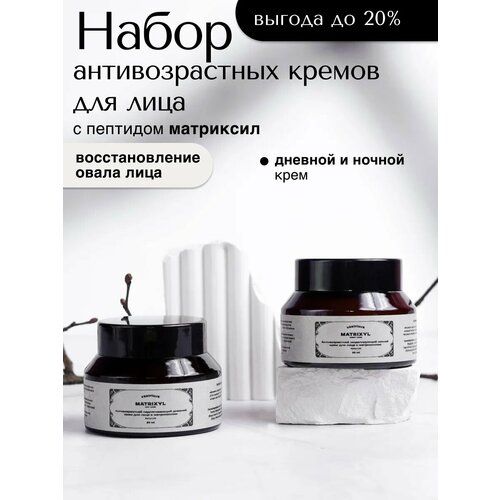 Набор уходовой косметики для лица включает в себя омолаживающий антивозрастной ночной и дневной крема для лица для возрастной кожи любого типа. Комплексное использование средств направлено на повышение упругости кожи, омолаживание и разглаживание морщинок. Питательные и увлажняющие крема для лица от морщин эффективно борются с несовершенствами и моделируют овал лица. Лифтинг для лица с матриксилом корректирует возрастные изменения. Ночное средство придает коже упругость. Подходит для разного возраста. Для молодого (30, 35 +). Зрелого (40, 45, 50, 55 +). А также для пожилого (60, 65 +). Набор подходит для комплексного anti age (анти эйдж) ухода Бьюти-бокс с уходом для лица — идеальный сюрприз для мамы, жены или себя. Подарите своей коже красоту, упругость и глубокое увлажнение.