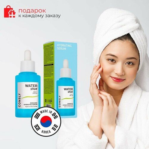 Увлажняющая и восстанавливающая сыворотка для лица Water Shot Enriched Hydrating Serum южнокорейской марки Consly подходит для кожи любого типа, особенно рекомендована для сухой. В основе формулы находится гиалуроновая кислота и ниацинамид, которые мгновенно увлажняют, смягчают и выравнивают кожу, надолго сохраняют увлажнение.